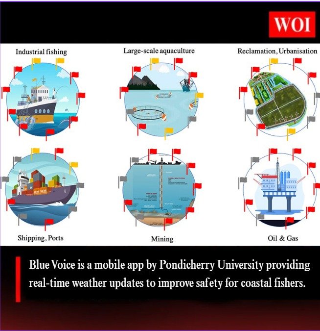 Pondicherry University has launched a mobile application named Blue Voice to improve safety and disaster preparedness among coastal fishing communities. The initiative focuses on delivering real-time, location-specific weather updates in a simple and accessible format, helping fishers make informed decisions before heading out to sea.