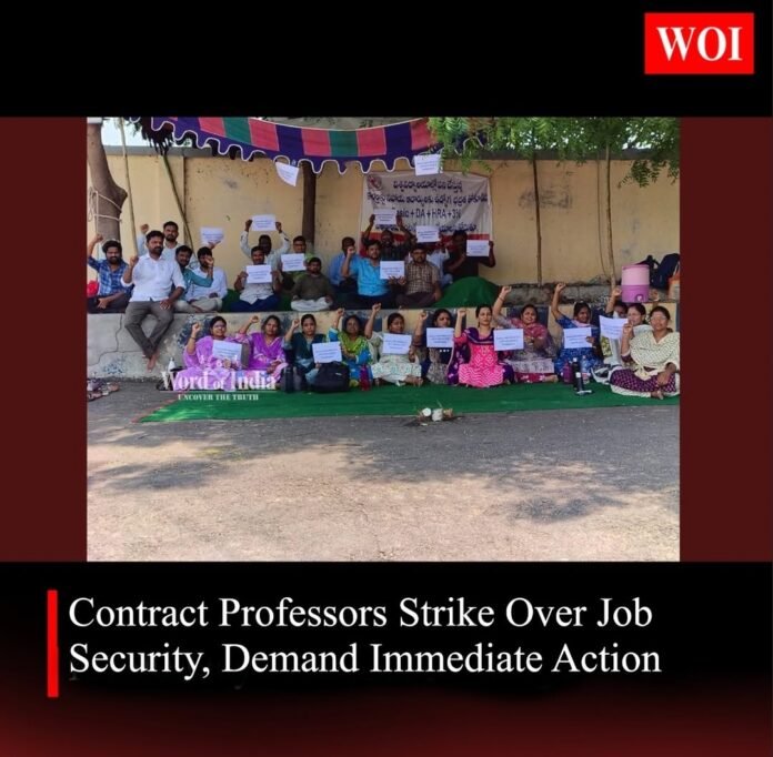 An indefinite strike has been launched by contract assistant professors across state universities demanding immediate resolution of their long-pending issues. On Monday, assistant professors staged a protest at the entrance of JNTU Sultanpur under the banner of the university’s administrative body. Holding placards, they raised their voices for justice and job security.