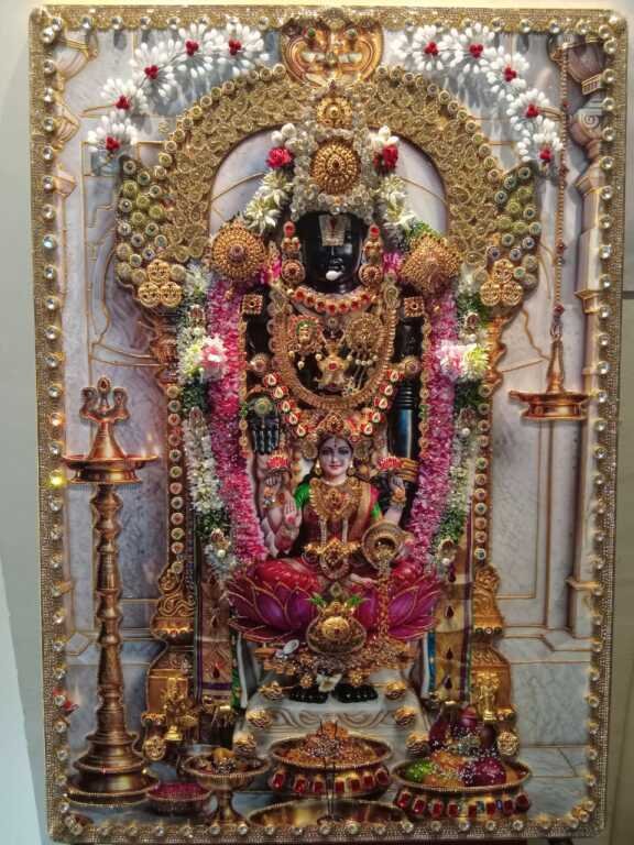 The artwork features the sacred pairing of Lord Venkateswara and Goddess Lakshmi, symbolizing protection, prosperity, and balance.