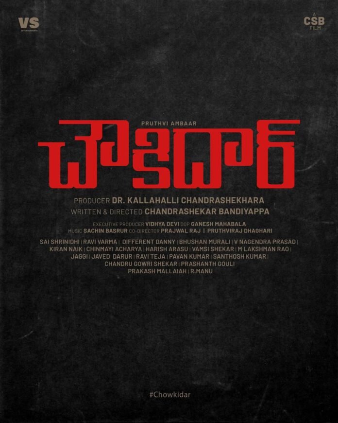 Diya fame Prithvi Ambar and Rathavara director Chandrasekhar Bandiappa’s new movie has been titled “Chowkidar.” Prithvi now plays the role of the chowkidar. The title “Chowkidar” was revealed by the film team in red letters. Roaring star Srimurali Supported Chandrashekar Bandiappa’s 6th attempt and announced the title “Chowkidar,” congratulating the entire team. “Chowkidar” is a multilingual film; besides Kannada, it is being made in many other languages.