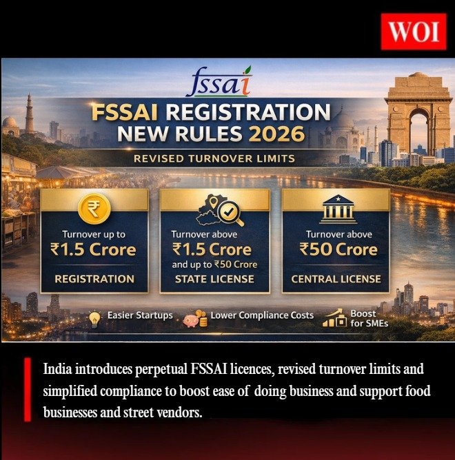 The government has also revised turnover limits for licensing, effective from April 1, 2026. The threshold for basic registration has been increased from ₹12 lakh to ₹1.5 crore, while businesses with turnover up to ₹50 crore will require a state licence and those above ₹50 crore will need a central licence.