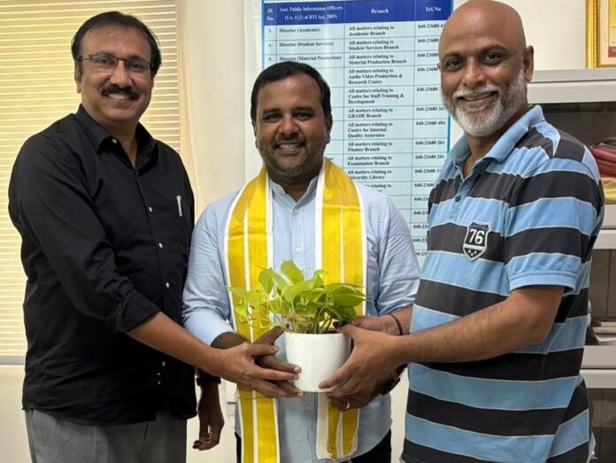 Celebrating the momentous occasion, Prof. Vaddanam Srinivas Rao, Dean of Social Sciences at Dr. B.R. Ambedkar Open University, congratulated Dr. Yadagiri and felicitated him with a sapling, symbolizing growth and sustainability. “It’s a moment of pride for the university and for the entire Hyderabad PR community,” Prof. Rao remarked during a brief ceremony at the university.