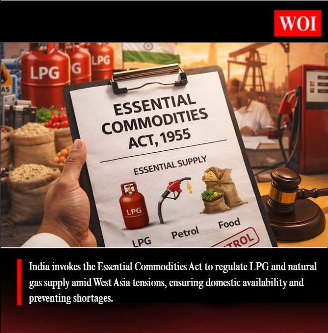 The Government of India has invoked the Essential Commodities Act (ECA), 1955 to safeguard the supply of Liquefied Petroleum Gas (LPG) and natural gas amid rising geopolitical tensions in West Asia. The decision comes after the conflict involving Israel, the United States, and Iran on February 28, 2026, which raised concerns about potential disruptions in global energy supply chains.