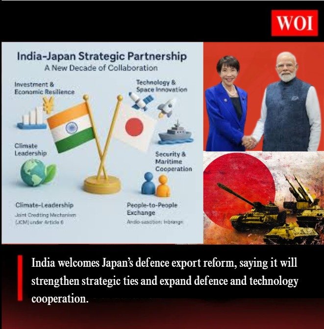 India has welcomed Japan’s decision to revise its defence export rules, calling it a significant step toward strengthening bilateral security cooperation. The Ministry of External Affairs (MEA) stated that the move will further deepen the India–Japan Special Strategic and Global Partnership, particularly in defence, technology, and manufacturing sectors.