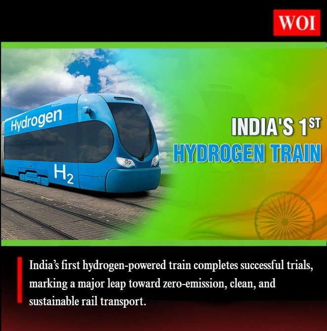 Developed indigenously by the Integral Coach Factory, the hydrogen train will operate on the Jind–Sonipat route in Haryana, supported by a dedicated hydrogen production facility at Jind. With this achievement, India joins a select group of nations using hydrogen-powered trains, reinforcing its commitment to green mobility and the Make in India vision.