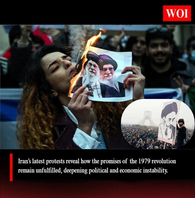 What began as a movement to end authoritarian rule and foreign domination has resulted in a system where dissent is criminalised and daily life is tightly controlled. Economic conditions have worsened under inflation, unemployment and corruption, widening the gap between the state and society. Repeated protest movements over the years have been suppressed but never eliminated, re-emerging in more open and radical forms.