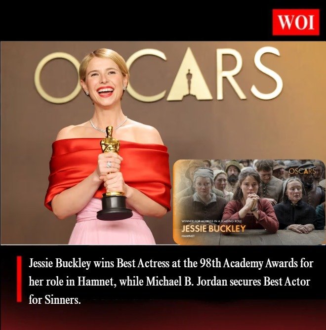 Jessie Buckley won the Best Actress award at the 98th Academy Awards for her powerful performance in the film Hamnet, marking the first Oscar win of her career in a leading category. Her portrayal of Agnes Shakespeare, the wife of William Shakespeare, was widely praised for its emotional depth and subtle depiction of grief and resilience.