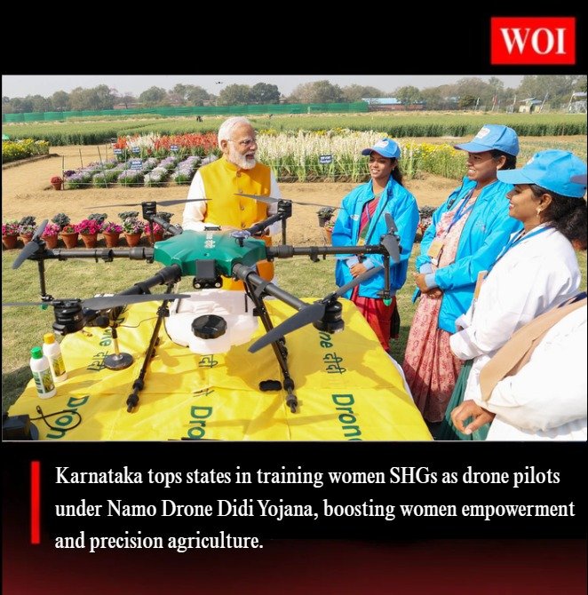 Karnataka has emerged as the leading state in training women Self-Help Groups (SHGs) as drone pilots under the Namo Drone Didi Yojana, marking a major milestone in women’s empowerment and technology-driven agriculture.