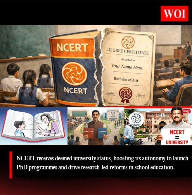 In a landmark reform for school education in India, the Ministry of Education has granted ‘Deemed to be University’ status to the National Council of Educational Research and Training (NCERT). The decision was taken on the recommendation of the University Grants Commission (UGC), placing NCERT in a distinct category of specialised academic institutions.