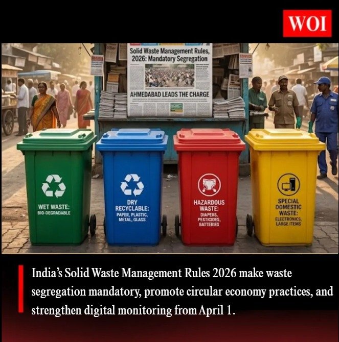 In a major step towards cleaner cities and sustainable living, India has notified the Solid Waste Management Rules, 2026, which will come into force from 1 April 2026, replacing the earlier 2016 framework. The rules were issued on 27 January 2026 by the Ministry of Environment, Forest and Climate Change (MoEFCC) and aim to strengthen waste segregation, promote a circular economy, and enhance accountability across the waste management chain.